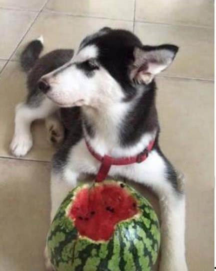 除了狼性瞬间,二哈吃瓜的视频中,还有很多萌态十足的瞬间,让人忍不住想要抱抱它们。